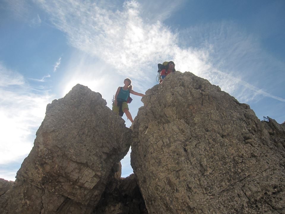 Tilbake til klatringen. Klatringen i Riglos er spesiel og det var vi klar over. Her snakker vi ikke om små tak som du kjenner i fingerleddene, men heller runde steiner som du må gripe over eller rundt og du kjenner det i kroppen på andre måter og steder. I begynnelsen er du litt redd for at alt skal rase rundt deg, spesielt med tanke på stormen som hadde vært, men merkelig nok ser tårnene ut til å holde sammen. Etterhvert som klatreteknikken tilpasser seg så er klatringen artig om enn anderledes. Det sies om klatringen her at enten så passer den deg eller så gjør den ikke det. Vel, vi syntes den var gøy å prøve ut. Når vi sier at «tårnene holder sammen» så mener vi som store tårn for det gikk en hel del mindre ras og du måtte teste steinene litt før du dro til med fullt trykk på både arm og beintak. Du ville heller ikke at andre taulag skulle klatre over deg. Noe vi selv skulle få merke.